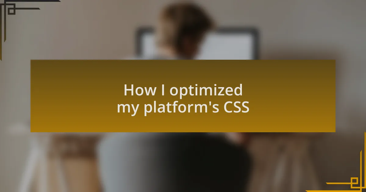 In my journey to optimize CSS, I discovered the power of reorganizing my stylesheets. One day, I decided to categorize my styles into logical sections: layout, typography, and components. This simple act not only made my code cleaner but also allowed me to find and modify styles faster—saving me countless hours of frustration. Have you ever rearranged something and realized how much more efficient it became?